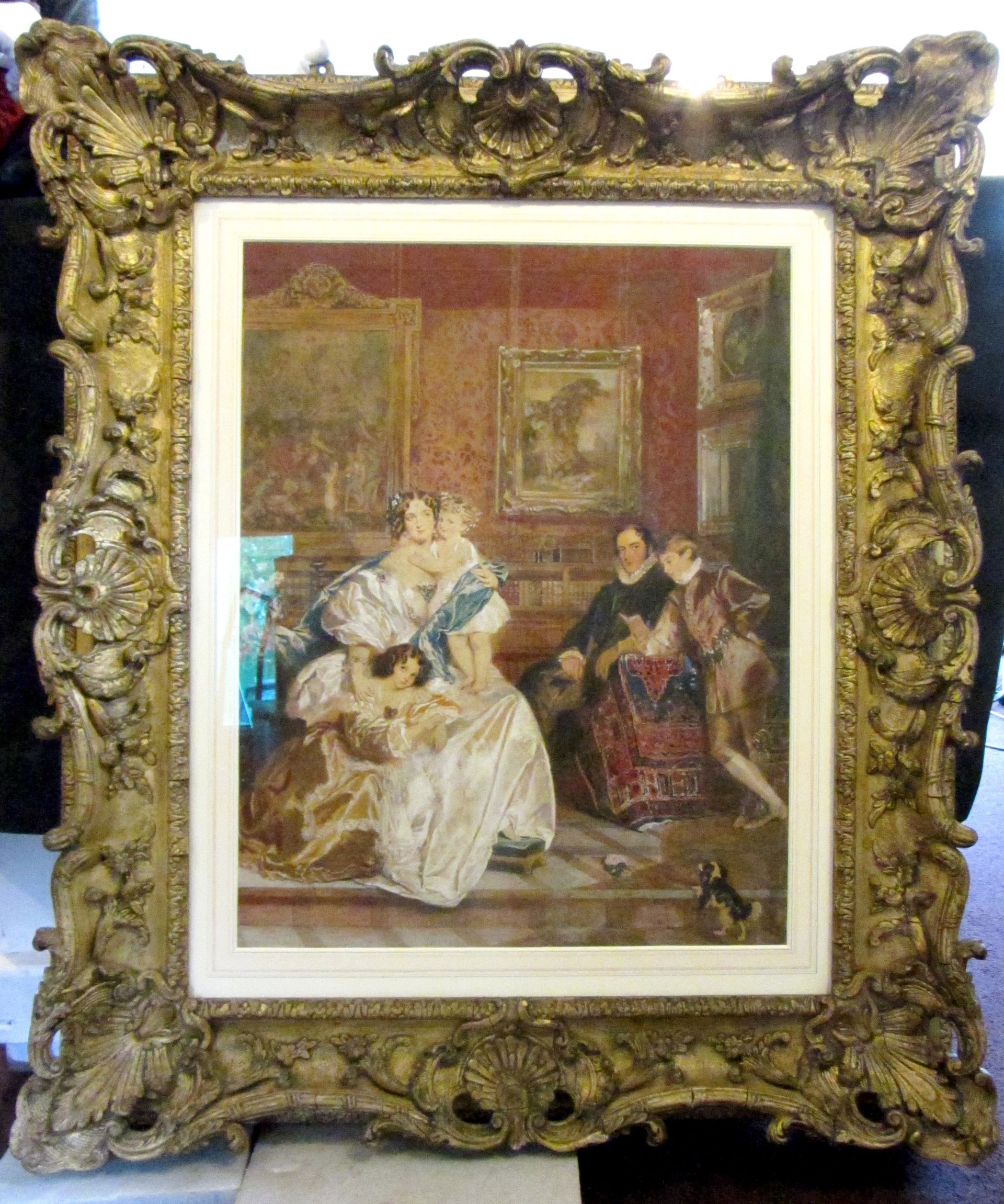 Conservation of the composition moulded gilded frame including the replacement of missing mouldings and gilding of the new sections.